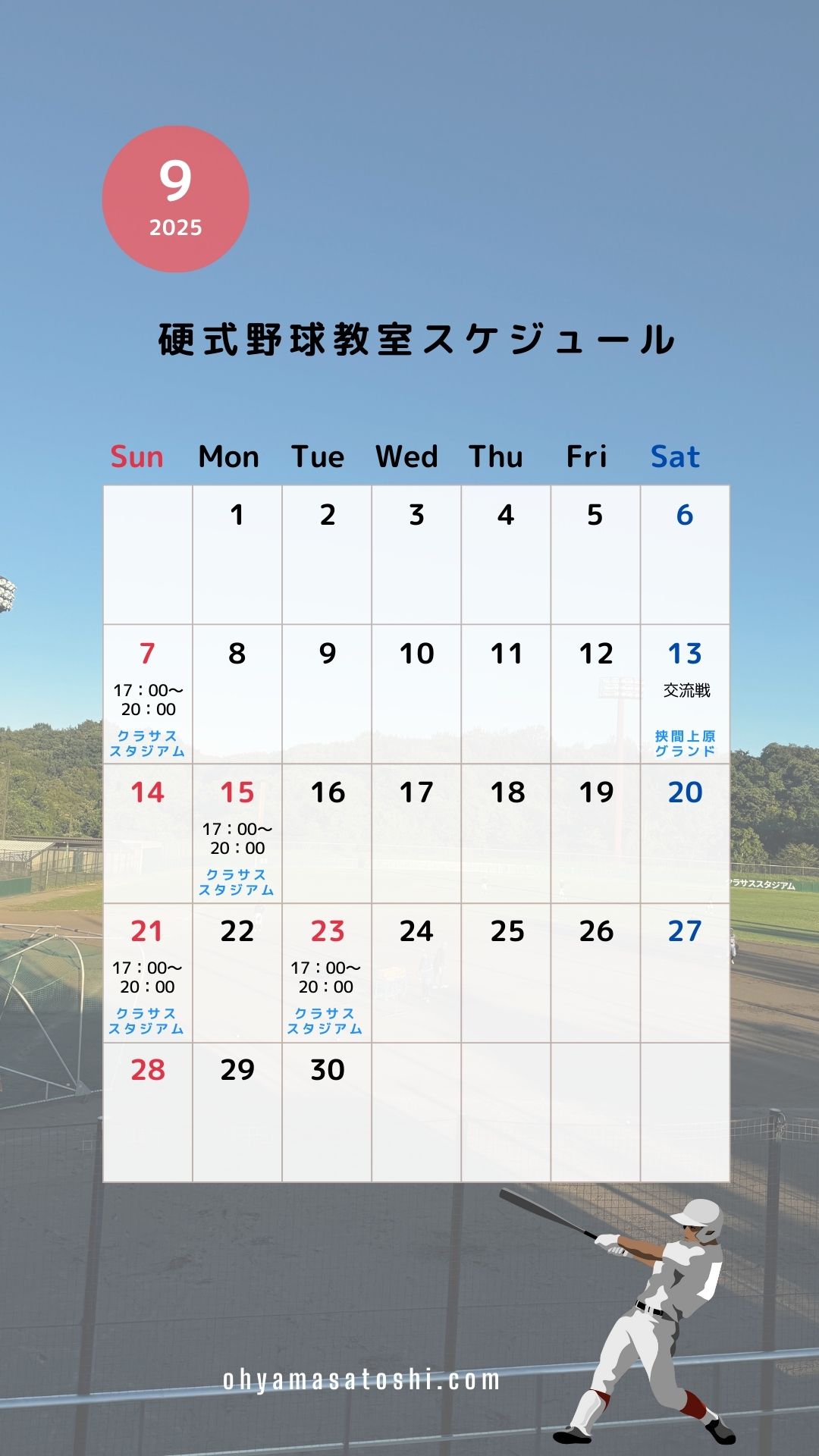【9月の練習会予定】