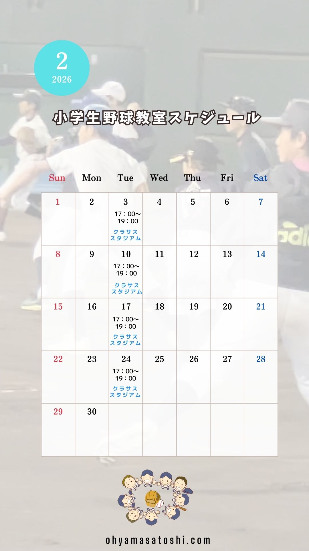 アウローラ小学生野球教室 2月スケジュール